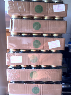 Apparently beekeepers buy their jars in Autumn – the essex beekeepers did a bulk buy so I collected my order of 246 0.5lb jars today from a Turkey Farm in Stock in preparation for a potential honey harvest. I met Giles there (EBKA member), an experienced beekeeper, who told me that this has been the worst year for beekeeping in all his years because the weather has been bad for the bees. Also told me that he has had to feed the bees otherwise they won’t survive the winter. It’s funny because my mum keeps telling me not to!