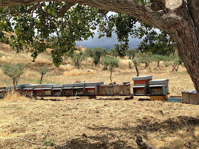 I recently discovered the most incredible apiary at a Sicilian farm on a trip to Italy.  It was simply a long row of hives sitting next to each other.  I had always thought hives were meant to be positioned apart but clearly not here. The farm also kept their hives higher up in the mountains and near the beautiful beaches.