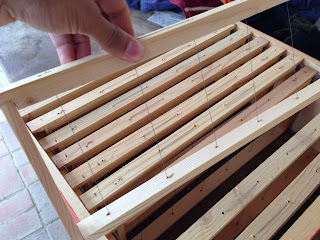 1. They must have a lot of drifting going on with the hives set up in one long line like that. The honey looks gorgeous.